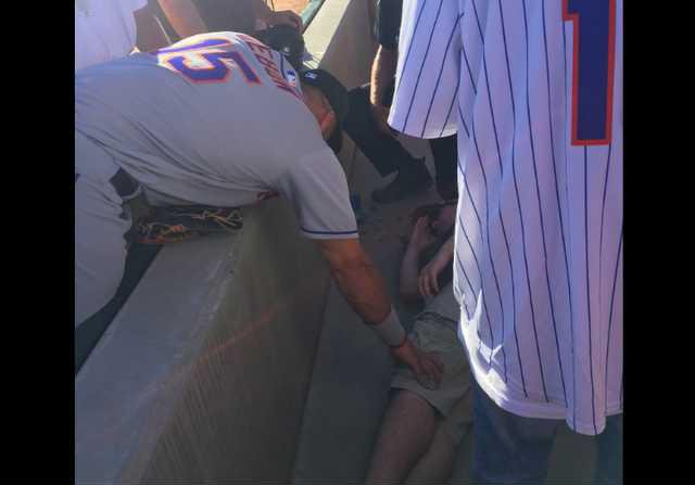 The ex-NFL star who is now playing Mets minor league baseball told the man, who is identified in media reports as Brandon, that medics would take good care of him and offered him well wishes.