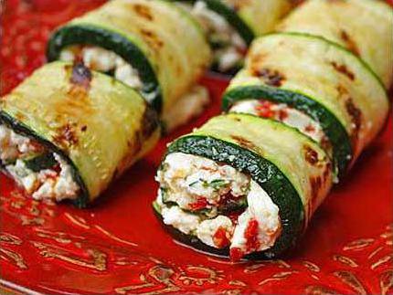 Grilled zucchini and goat cheese roll-ups