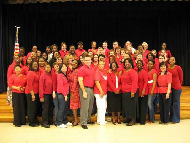 Joining with thousands of women and men across the United States, the faculty and staff of LES, under the direction of Principal Chris Anderson, supported the national awareness campaign for women about heart disease. National Wear Red Day is one day when everyone can show their support and participation in the fight against heart disease in women by wearing red.