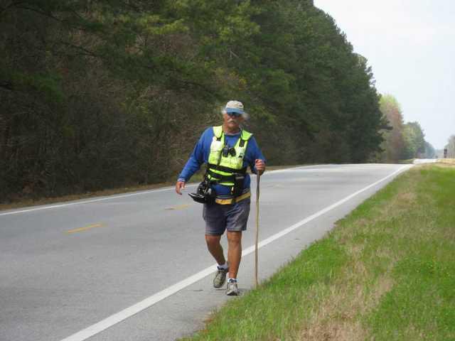 Walking through his 33rd state on Monday, Mandell hit 9,200 miles on his way through Liberty County. He has another 1,100 miles to go, and hopes to reach his starting and finishing point of Madeira Beach, Fla. by December.
