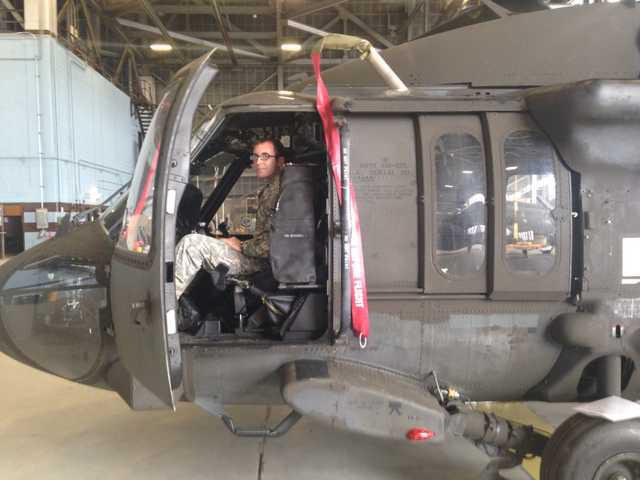 After he dismissed the members of his company, who each took their leave with a hearty salute, Capt. Ethan rewarded me with a visit to a Blackhawk helicopter. He even let me press a bunch of buttons and everything. As we crunched across the gravel parking lot, he acknowledged that at home, his wife, Christina, is the real commander.