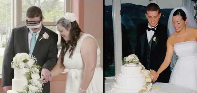 Airey, who married his wife 15 years ago, had a chance see his wife for the first time when the couple decided to have a second wedding, according to Mashable.