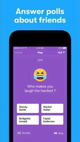 The app is pretty simple. Users anonymously answer positive multiple choice questions about their friends. Example questions include, Who has the best smile? or Whos the best to bring to a party?