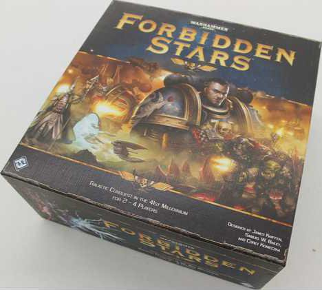 Forbidden Stars, a new strategic light war game from Fantasy Flight Games, is set in the grim Warhammer 40K universe and sees two to four players vie for galactic domination. Players first select their faction: the human Space Marines, the mysterious Eldar, the brutal Orks or the evil Chaos Marines. Next, players construct a game board using tiles that feature worlds and voids. Each player's worlds contain objective tokens for other factions.