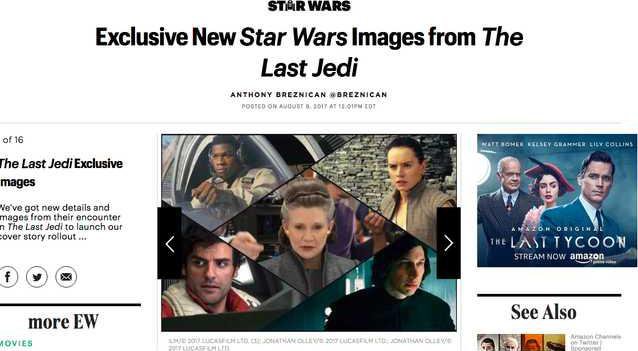 Entertainment Weekly published a set of exclusive images from the upcoming Star Wars: The Last Jedi," which debuts Dec. 15, 2017.
