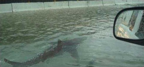 A photo of a shark swimming down a Houston freeway went viral on Monday in the wake of Hurricane Harvey, which has been downgraded to a tropical storm.