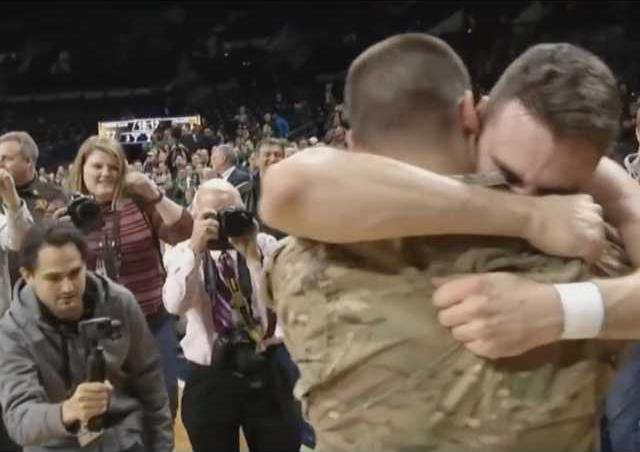 Following a Fighting Irish win on Monday night, Matt Farrell was surprised when a video message from his brother began to play on the scoreboard but the surprise became really special when, at the end of the video, it became apparent that Bo Farrell was actually in the Notre Dame basketball arena.