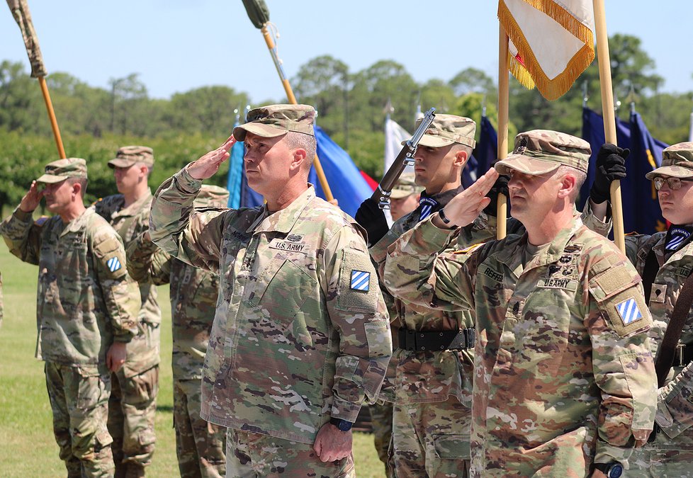 FORT STEWART – The 3rd Infantry Division flag was uncased and unfurled again at Cottrell Field on Thursday morning, and commanders saluted the division’s troops for their recent European mission.