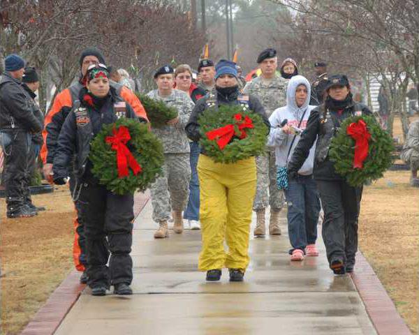 “Putting my love for motorcycling along with my love for supporting our soldiers and organizing good causes, the Bomber Girls LRC just became a good fit,” she said. “I was invited to try them out, and it proved to be a great thing to be a part of. Not only do the Bomber Girls have monthly fundraisers to fill and ship care packages to deployed soldiers, we also volunteer through the Red Cross for Services to Armed Forces and get the opportunity to greet and send off troops from Hunter Army Airfield. We meet not only 3rd Infantry Division soldiers, but also National Guard, Marines and others flying in, out or through Hunter. We also get involved with Wreaths for Warriors Walk, and have adopted four soldiers’ trees along the walk, whose families are or appear to be too far to attend the annual wreath laying, Memorial Day or other times.”
