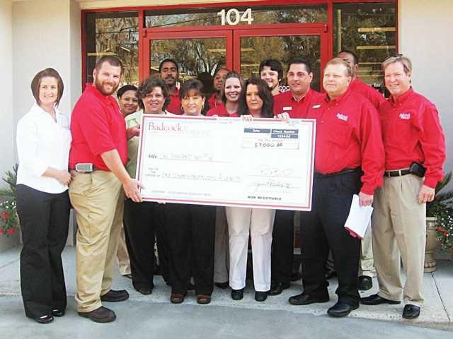 After accepting the $1,000 check, Tri-County Protective Agency Executive Director Paula Foerstel thanked Badcock’s staff and executives for their generosity.