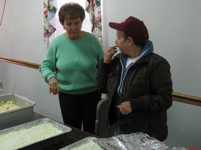 The meal was originally to be in the parking lot between the courthouse and the sheriff's department, but with the hospitality of the Ludowici Church of God, was moved to it fellowship hall because of the cold.