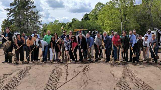 Dryden employees, Hinesville Mayor Allen Brown, city council members and local officials grabbed a golden shovel and threw up some dirt, symbolically starting construction on the new facility.