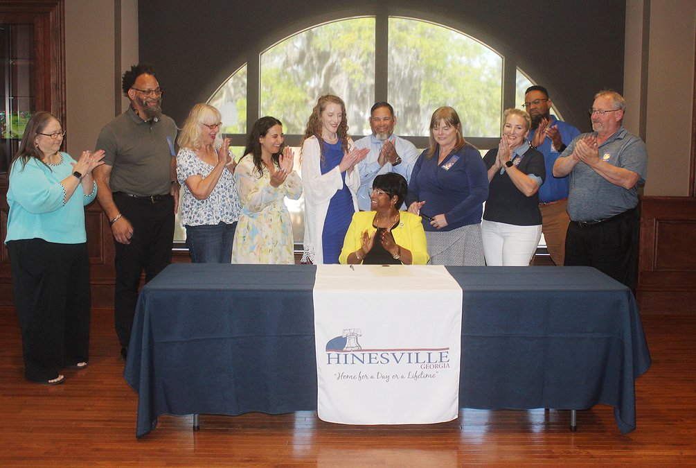 With help from GeoVista and Helen’s Haven Children’s Advocacy Center, Hinesville Mayor pro tem Diana Reid signs a proclamation for the City of Hinesville declaring April as Child Abuse Prevention and Awareness Month.