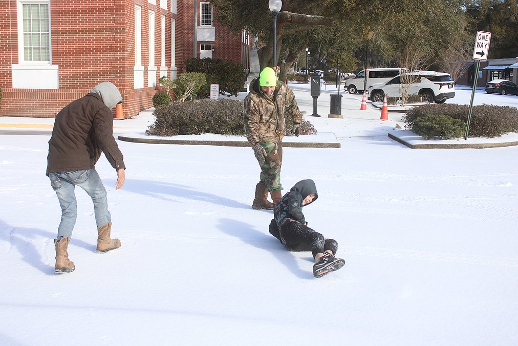 Sean Hafer and his family took advantage of the quiet roads and still Wednesday morning to enjoy the snow at Bradwell Park. He’s lived in Hinesville for almost 12 years and recalled the snow storm of 2018. But that snow was “not this deep,” he said. “It’s been a while.