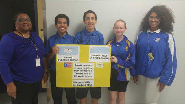 Bradwell Institute's Future Business Leaders of America club is raising money for hurricane victims in Puerto Rico and U.S. Virgin Islands.