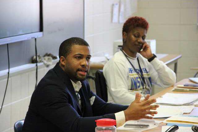 Moore was just like the students who were sitting in class listening to him, as he talked about his beginnings as a student at Bradwell. He played football on the defensive side and graduated from Bradwell Class of 2010. He wanted to play on the collegiate level, but did not receive any scholarships until he gave his contact information to a coach on an opposing team and received multiple scholarships, eventually leading him to attend Clark Atlanta University.