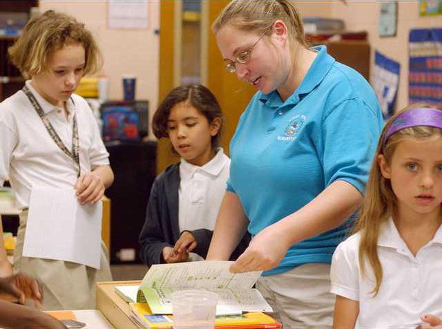 “The passage says he was nervous,” Victoria Peterson tells her third grade class Wednesday. “We talked about this word, class. How many of you are still nervous about taking the test?”