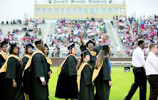 As the Liberty County High School graduating seniors of the Class of 2016 lined up on the field of the Donell Woods Stadium Saturday evening, their families and friends shouted their names and cheered for them from the stands.