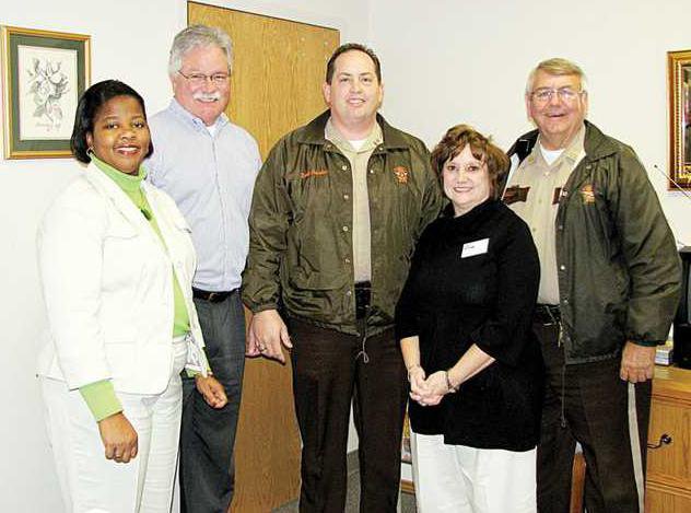 MMS Principal Debra Frazier, LCSO chief deputy Keith Moran, assistant superintendent for student services Mary Alexander and Liberty County High School resource officer Donald Moody put the safety of the middle school in the hands of LCSO Cpl. Gary Richardson.