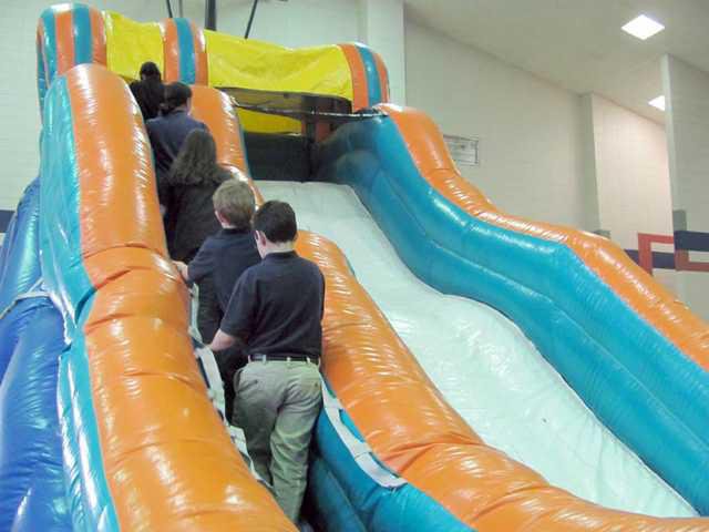 The party was in the gym where students played on a giant inflatable slide and got airbrushed tattoos. Media specialist and AR coordinator Cristina Dover and academic coach and First in Math facilitator Joy Kennedy oversee the programs.