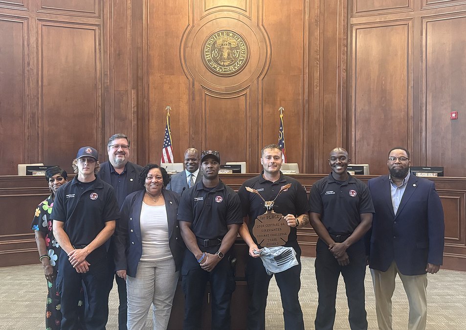 Hinesville City Council members recognized five members of the Hinesville Fire Department who won the Central Georgia Firefighters Combat Challenge.