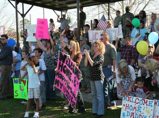 The early Thursday ceremony was originally scheduled to be late Wednesday, but the hour and chilly spring weather didn't keep friends and family from giving a warm welcome home to the second wave of soldiers returning from the unit’s third deployment from Iraq.