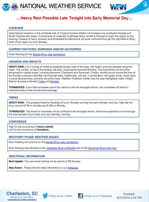 areas, including downtown Charleston and Savannah, if heavy rainfall occurs