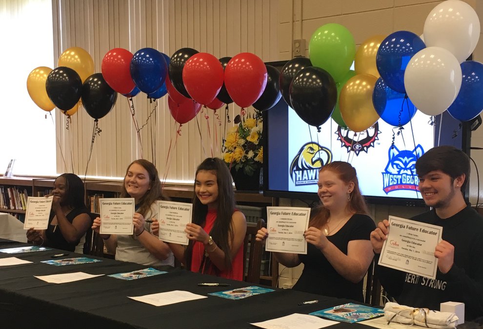 After words of encouragement from various educational professionals, students were read the following script: “By signing this letter of commitment, you are committing to improve the quality of education for students in the state of Georgia. The State School Superintendent, Richard Woods, your local administrators, community members, and teachers commend you on making an honorable decision to improve the quality of life for Georgia citizens through the educational process. You will be a great asset as we work toward ‘Educating Georgia’s Future.’ On behalf of State School Superintendent Woods, please sign the commitment certificate.”