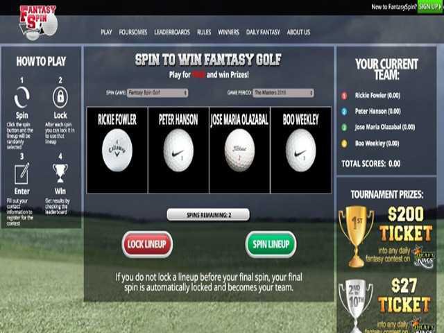 Players can visit FantasySpin.com and spin for their own foursome for the Grand Daddy of all tournaments. Each player may Spin up to 3 foursomes, receiving up to 5 spins for each one, giving them the opportunity to use their skill and knowledge of professional golf to determine which foursome they will keep to compete for the grand prize, a free ticket to a real cash fantasy golf game on DraftKings and their own green jacket. Players can check the Leaderboard at FantasySpin.com throughout the tournament, to see where they stand hold by hole.