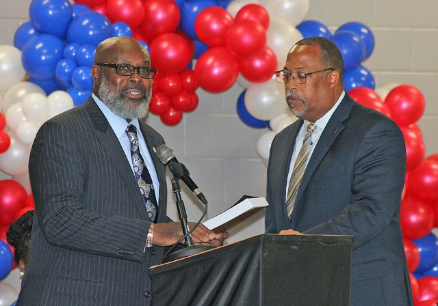 MIDWAY — There wasn’t a passing of the gavel — outgoing mayor Levern Clancy Jr. joked it was being shipped — but there was the handing of a bible from the old mayor to the new mayor to cap a sweeping change for the city.