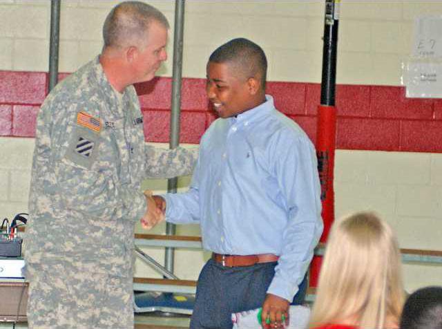 Col. George Geczy III, commander of the 188th Infantry Brigade, spoke at the sixth grade awards ceremony May 28 at Fort Stewart's Diamond Elementary School.