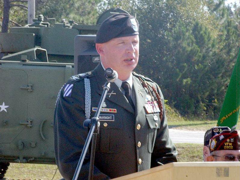 Col. Mark McKnight, division chief of staff, was standing in for Maj. Gen. Rick Lynch, division commander, who was attending a memorial service for a soldier killed in action.