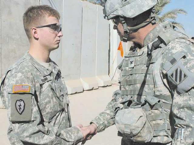 Soldiers in the 1-30 infantry battalion, 2nd Brigade Combat Team, 3rd Infantry Division, took time last week to thank a fellow soldier for actions performed in the line of fire.