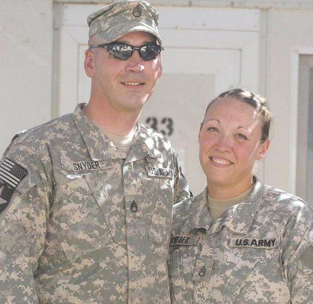 Staff Sgt. Darcy Snyder, a signal intelligence analyst with Company A, 2-3 Brigade Troop Battalion, 2nd Brigade Combat Team, 3rd Infantry Division, re-enlisted for four years. Her brother, Staff Sgt. Matthew Snyder, a combat engineer with 38th Engineer Company, 4th Brigade Combat Team, 2nd Infantry Division, signed on for six more years.