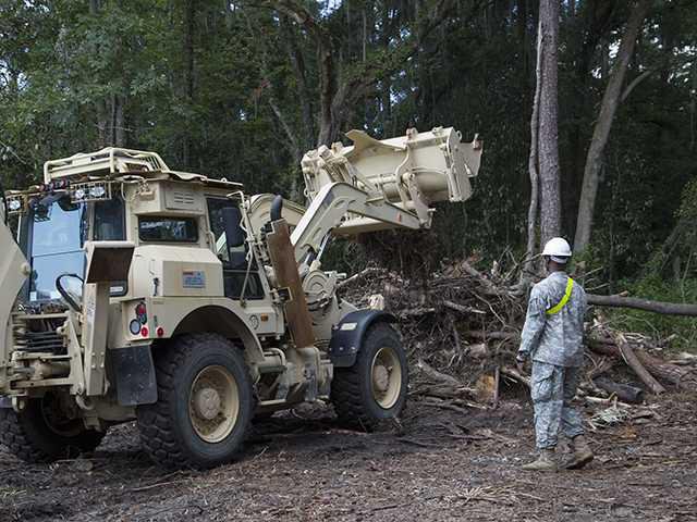 Soldiers from Fort Stewart’s 92nd Engineer Battalion started their first day at the Bryant Commons location by clearing debris from the site.