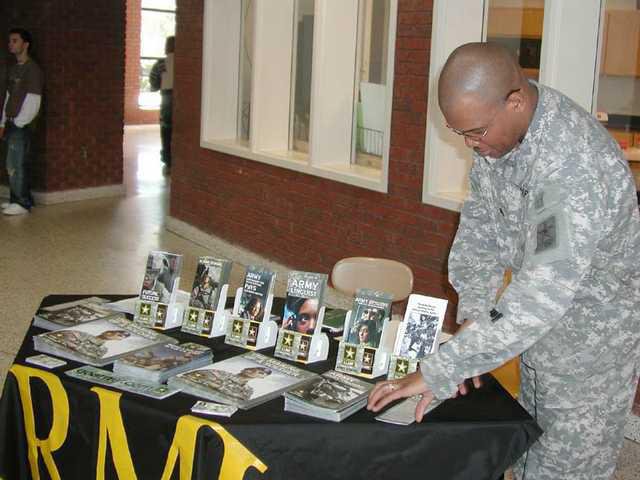 "This is a military town, so the kids here are a lot different from other areas. They're very Army-intelligent," the sergeant said. "A good part of them have Army parents...and so when they talk to an Army recruiter they pretty much know already exactly what they're looking for and what they want."