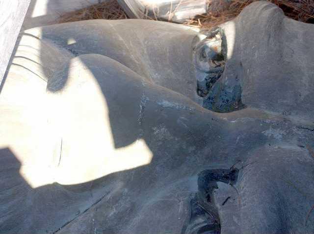 Also challenging is the fact that beneath the bronze patina of the sculpture’s face lies an infrastructure that was crafted from essentially scrap metal, making it likely difficult to work with should reconstruction be considered. Its bronze surface is stable, so it can stay where it is for the indeterminable future, Meeks said.
