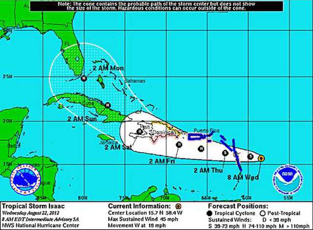 Isaac also poses a possible threat to Florida during next week's Republican National Convention in Tampa.