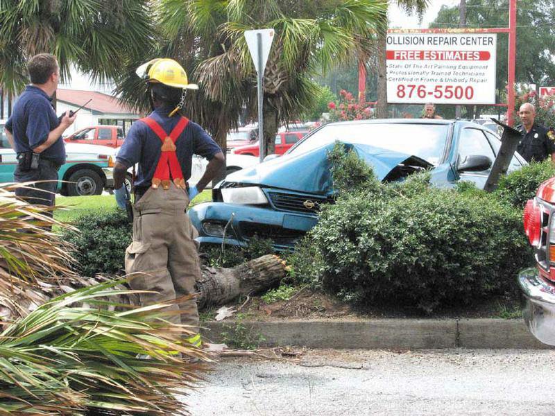 Two unrelated wrecks kept Hinesville traffic accident investigators and Liberty EMS busy Aug. 29. Just before noon, a male driver reportedly lost control of his vehicle as he attempted to make a turn from Highway 84 onto Courtland Drive. According to lead traffic investigator Les Patton, the driver attempted the turn while traveling at a high rate of speed and lost control, sending the Nissan into the median on Courtland Road. The vehicle stopped when it hit a palm tree, knocking it to the ground and partially blocking the north side of Courtland Drive. The driver told officers Patton and Michael Mooney his brakes failed as he made the turn. The driver was taken to Liberty Regional Medical Center.