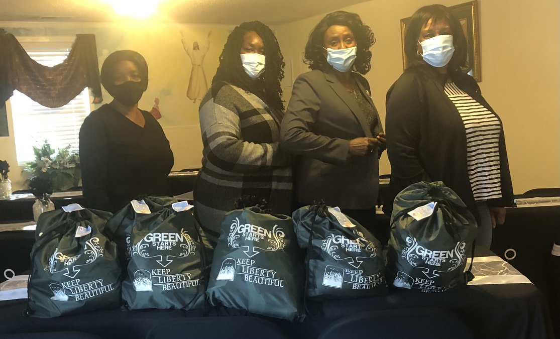 The kits were packed in gallon-size plastic bags and some in Keep Liberty Beautiful backpacks. The kits had masks, hand sanitizers, wipes, toothbrushes, toothpaste, soap, shampoo, combs, razors and shaving cream, deodorant, tissues, washcloths, socks, and a few had gift cards. Some kits had hats and gloves. The Disabled American Veterans (DAV) Chapter #46 donated toys, food, blankets, and pillows for the project.