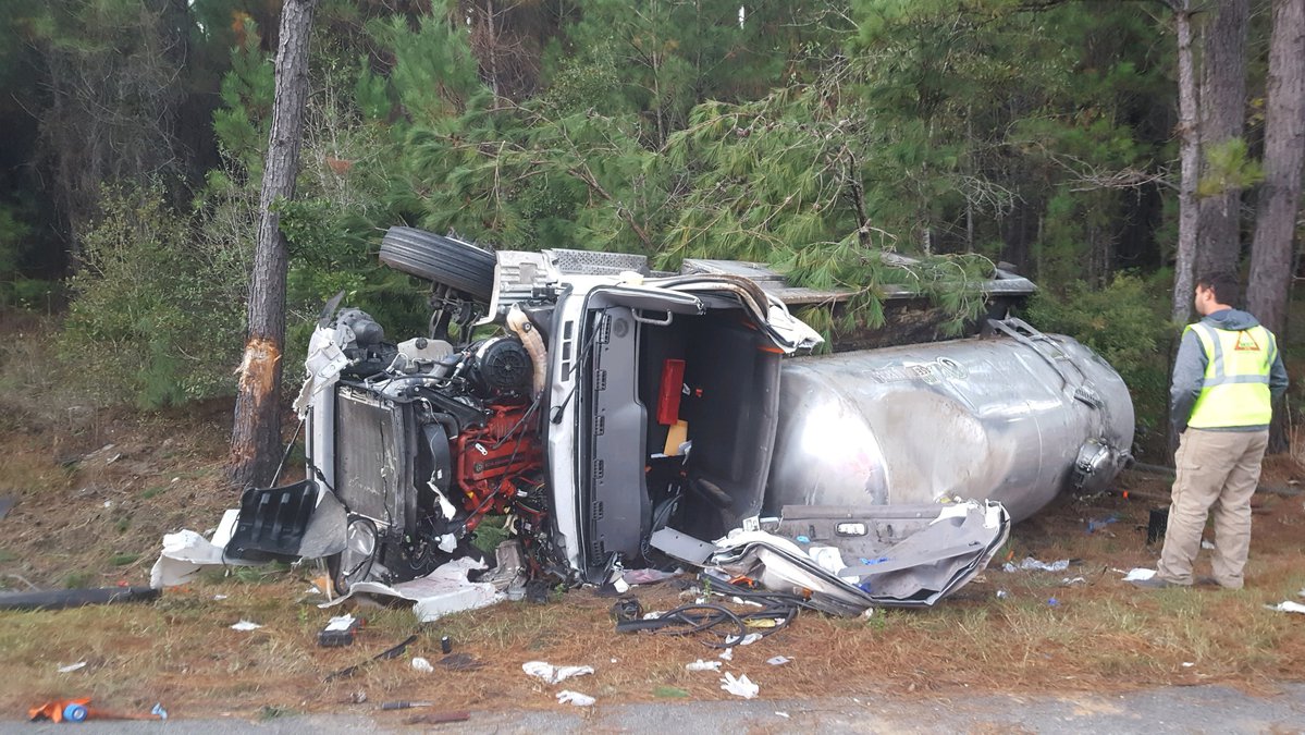 Purcell said when the fire department responded to the scene they encountered an overturned truck hauling used cooking oil with the driver trapped inside. According to Purcell, firefighters had to extricate the man using the jaws of life.