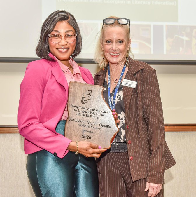Abimbola “BeBe” Ojelabi was named the 2026 EAGLE (Exceptional Adult Georgian in Literacy Education) delegate. This program celebrates adult learners who demonstrate superior achievement in adult education classes.