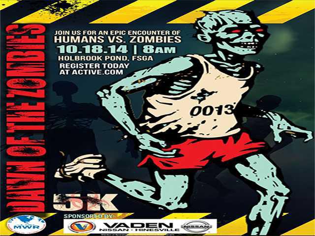 But the zombies won’t be trying to terrify anyone. They just want to add to all the fun at the “Dawn of the Zombies 5K Run at Holbrook Pond.”