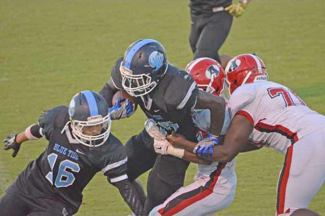 The Blue Tide got the ball first near mid-field and wasted no time showing the Pirates that this game would not be a cakewalk. On Long County’s first play from scrimmage quarterback Elijah Wright rambled fifty yards before being tackled at the Appling one-yard line. On the next play Wright handed the ball off to Deodrae Volcy who crashed across the goal line for the 1-yard score. Aron Nevarez converted the extra point the Blue Tide led 7-0.