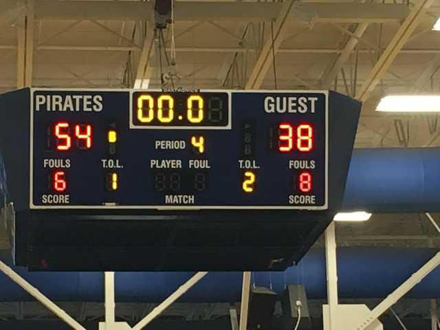Here's a shot of the scoreboard, sent by BI AD Ken Griffin. The Lady Tigers won 54-38. The victory assures coach Faye Baker's club of a home game in the upcoming girls' Class AAAAAA basketball tourney.