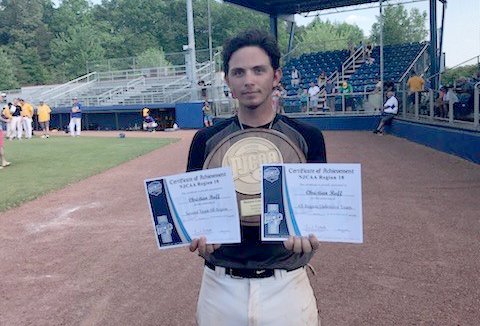 He plays baseball at Rockingham Community College where his team took the NJCAA Division III, Region X title. Leading up to the championship, his team beat Danville Community College 14-6 and then knocked down the Surry Knights 14-9. Sunday, they beat No. 1 seed Surry again, 12-11.