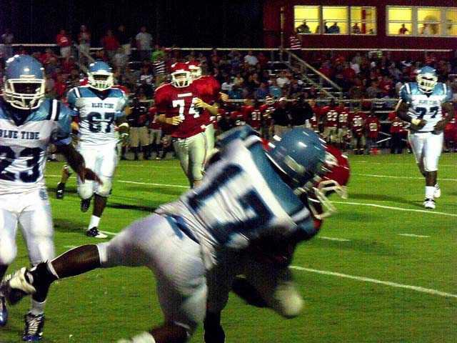 Bryan County went up, 7-0, in the first quarter on a 27-yard run by Lawrence Erekosima and Ty Wilson’s extra point, but the Blue Tide came right back, driving to the Redskins 1-yard line, where Jermaine Gibbs punched it in for the score. Miguel Hernandez’ extra point tied the game at 7-7.