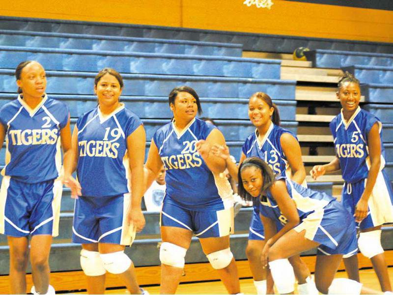 The Lady Tigers Volleyball team ham it up for the cameras before playing a triple header two weeks ago. The Tigers won against Beach and then split games against Windsor Forest.