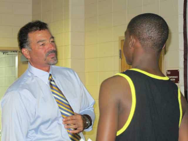 Snelson-Golden Middle School’s new principal, Tony Norce, greeted students and their parents at the entrance to the school during Monday’s open house.