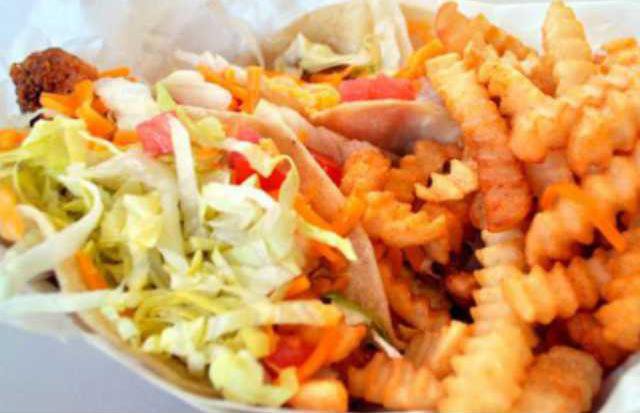 My fish tacos didn’t fare much better. The dish is ample — three corn tortillas stuffed with massive amounts of lettuce and one fish “finger” per taco. Standard fare crinkle cut French fries accompanied and were, now surprisingly, fried just right.